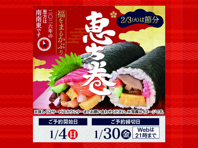 今年も新鮮なネタがぎっしり詰まった豪華な恵方巻をご用意!