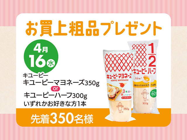 4/16(木)350名様限定 キユーピーマヨネーズ350 OR キユーピーハーフ300g