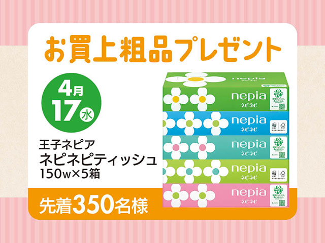 4/17(金)350名様限定 王子ネピア ネピネピティッシュ150w✕5箱